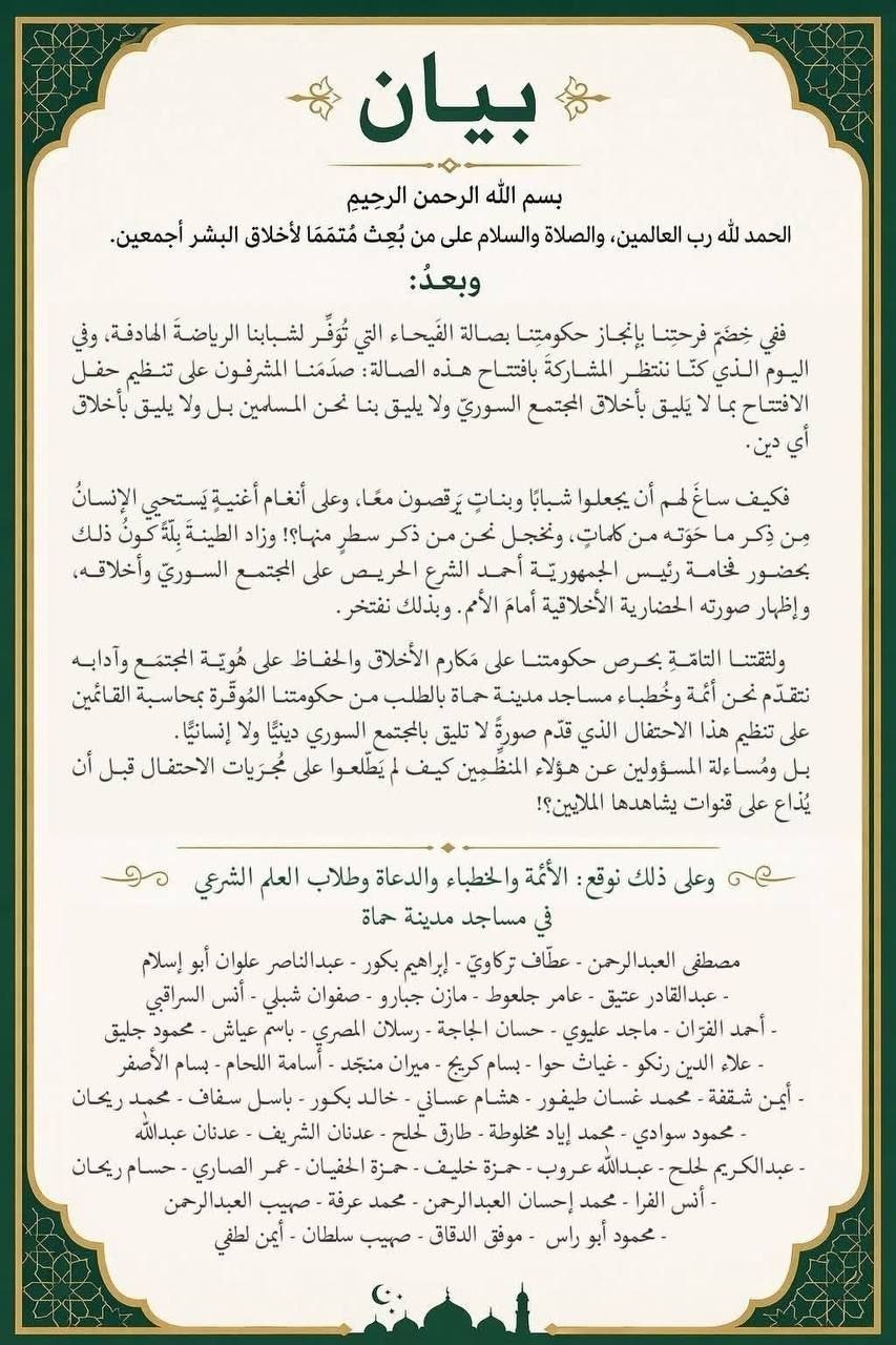 من ظنّ أنّ الجولانيّ غير راضٍ أو متأسّفٌ على حضور الحفل الماجن الفاحش الهابط في صالة الفيحاء بدمشق